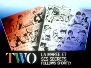 [00:00:01] PROGRAMME GRAPHIC: a ‘Follows Shortly’ slide for the French adventure series, La Marẻe et Ses Secrets, accompanied by some appropriate music.