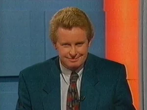 Presenter Dougie Donnelly interviews Jimmy White.