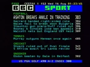 PICTURED: Pages from Ceefax. COPYRIGHT: BBC.