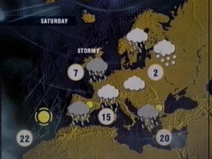 In the early months of Network 2, its weather bulletins were presented out of vision, using static forecast graphics.