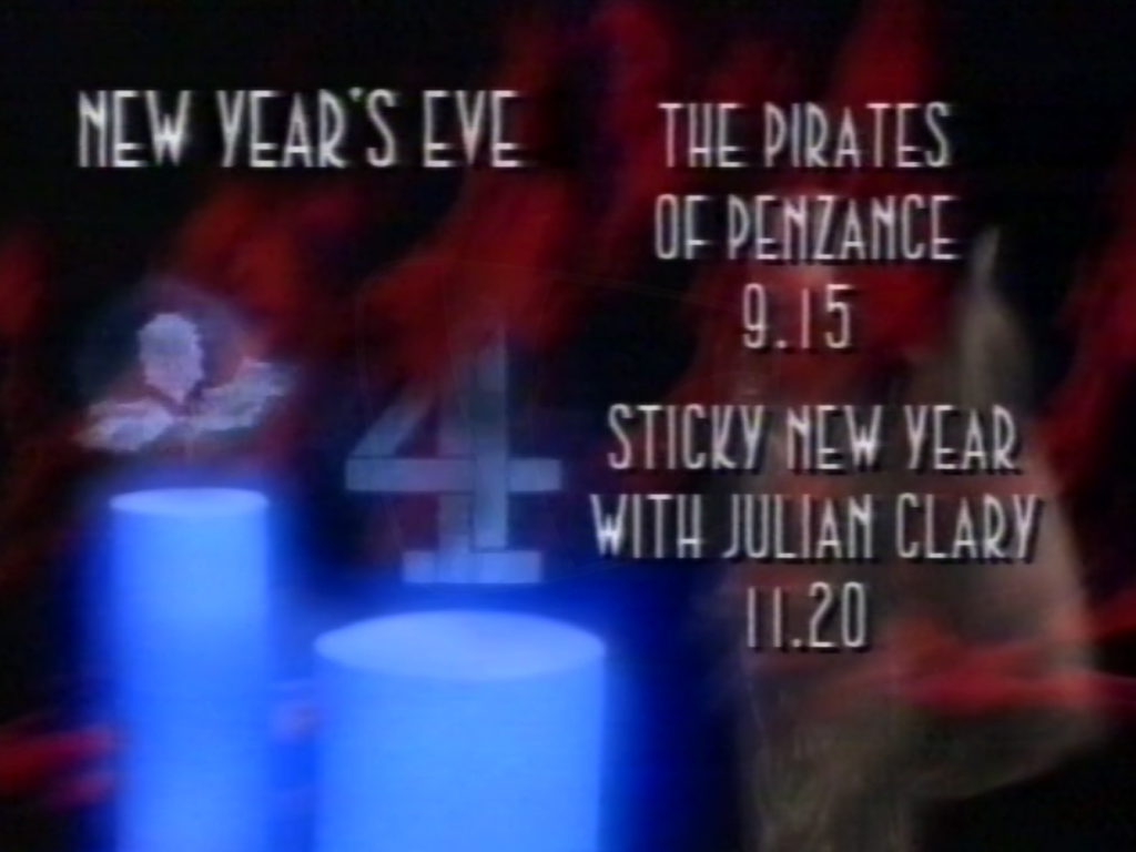 Channel 4 continuity including programme promotion for The Pirates of Penzance and Sticky New Year with Julian Clary followed by Horse Feathers opening (31st December 1989) 1st Feb 2024 Rewind Team